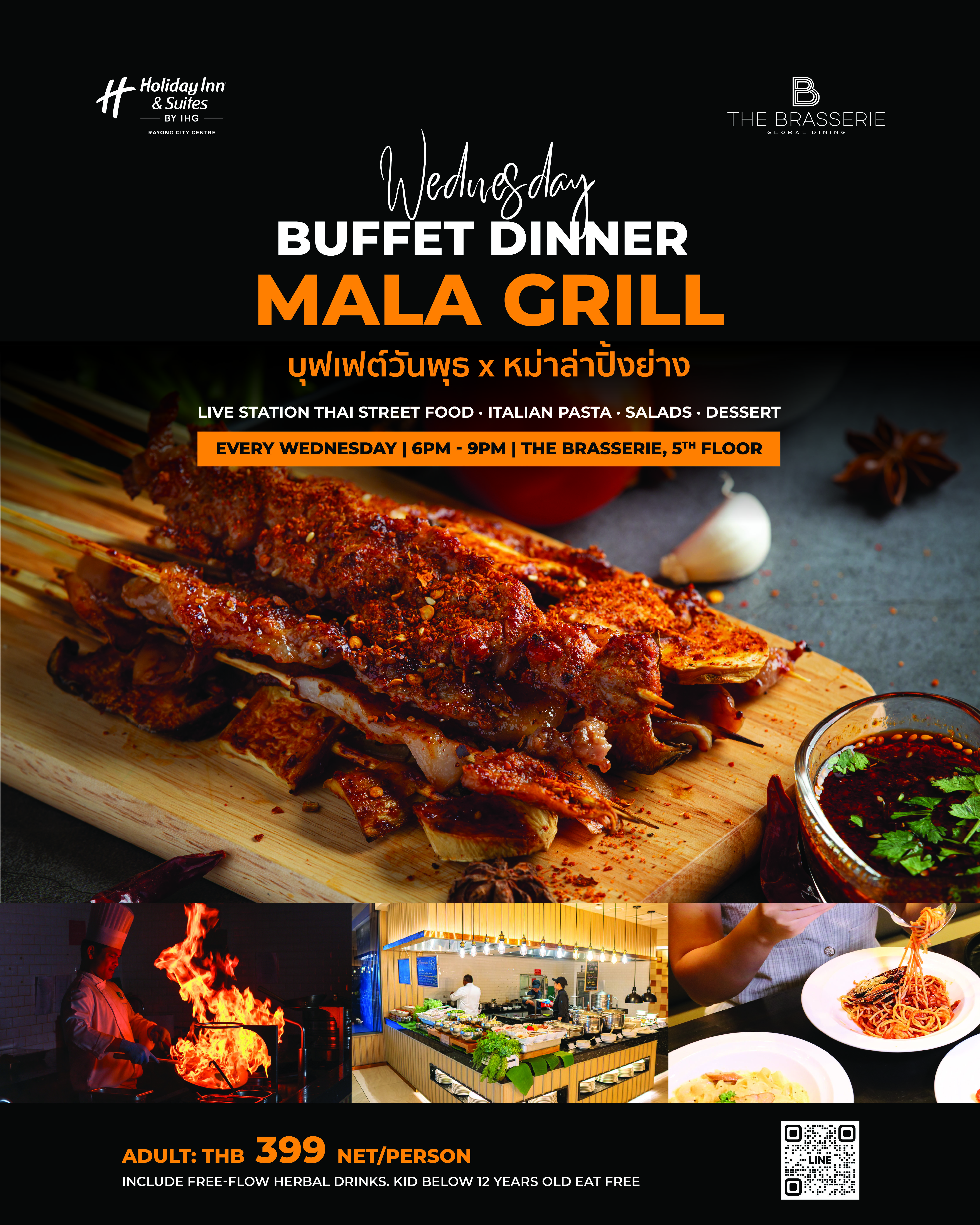 Celebrate chinese new year buffet. Join us this Wednesday and enjoy our buffet, now featuring Unlimited Live Mala Grill Station – freshly grilled and full of bold flavour. Indulge in Thai street food favourites, pasta, and salad bar. SEE MENU