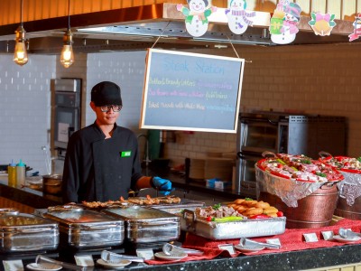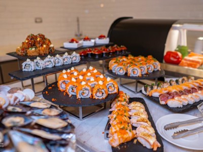Mid-Week Buffet Dinner at The Brasserie, 5th Floor, Holiday Inn & Suites Rayong City Centre. Indulge in a delicious spread of comforting favorites, including authentic Thai dishes, pasta, pizza, sushi, and a fresh salad bar.