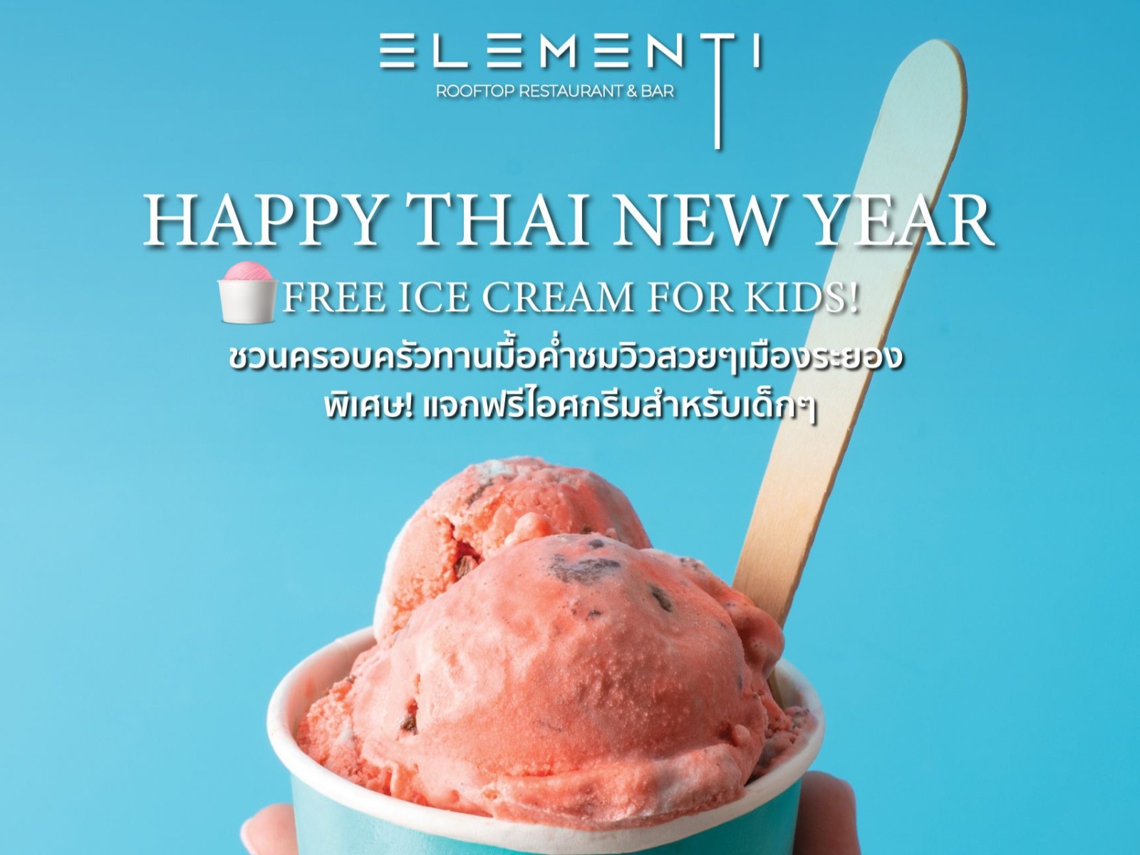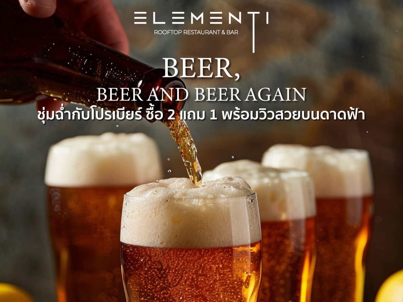 Special Dinner & Drinks with a Panorama View. Enjoy the Sunset Deal at Elementi Rooftop Restaurant & Bar Rayong with Premium steak meat and Happy Hours with Buy 1 Get 1 Free drink. Daily from 5.00 PM to 7.00 PM.
