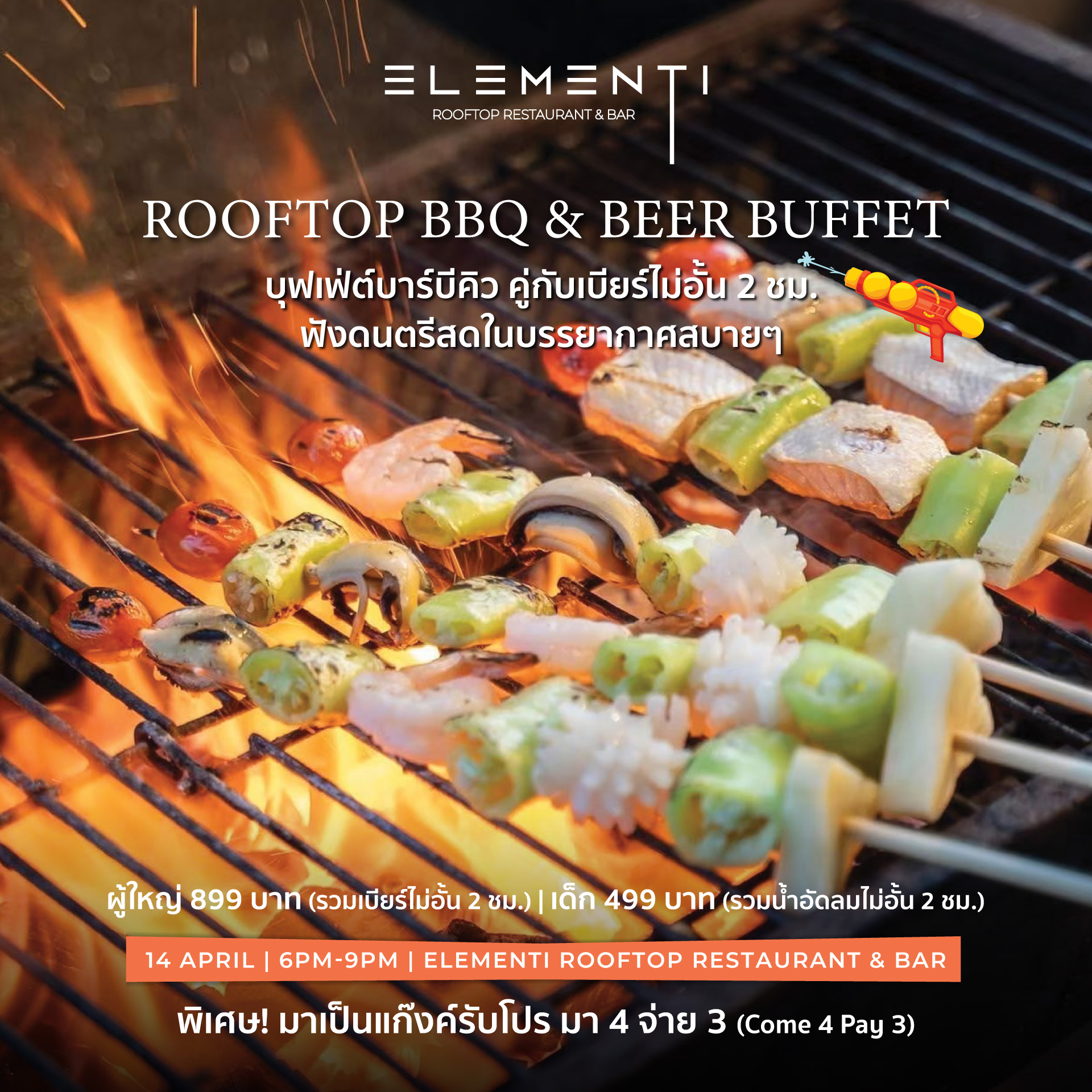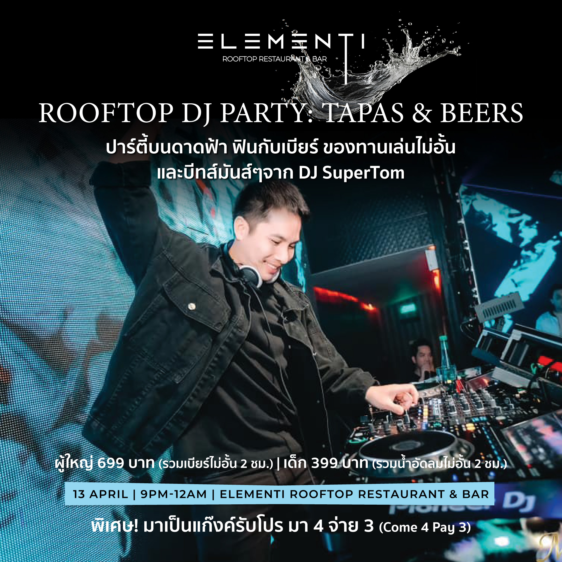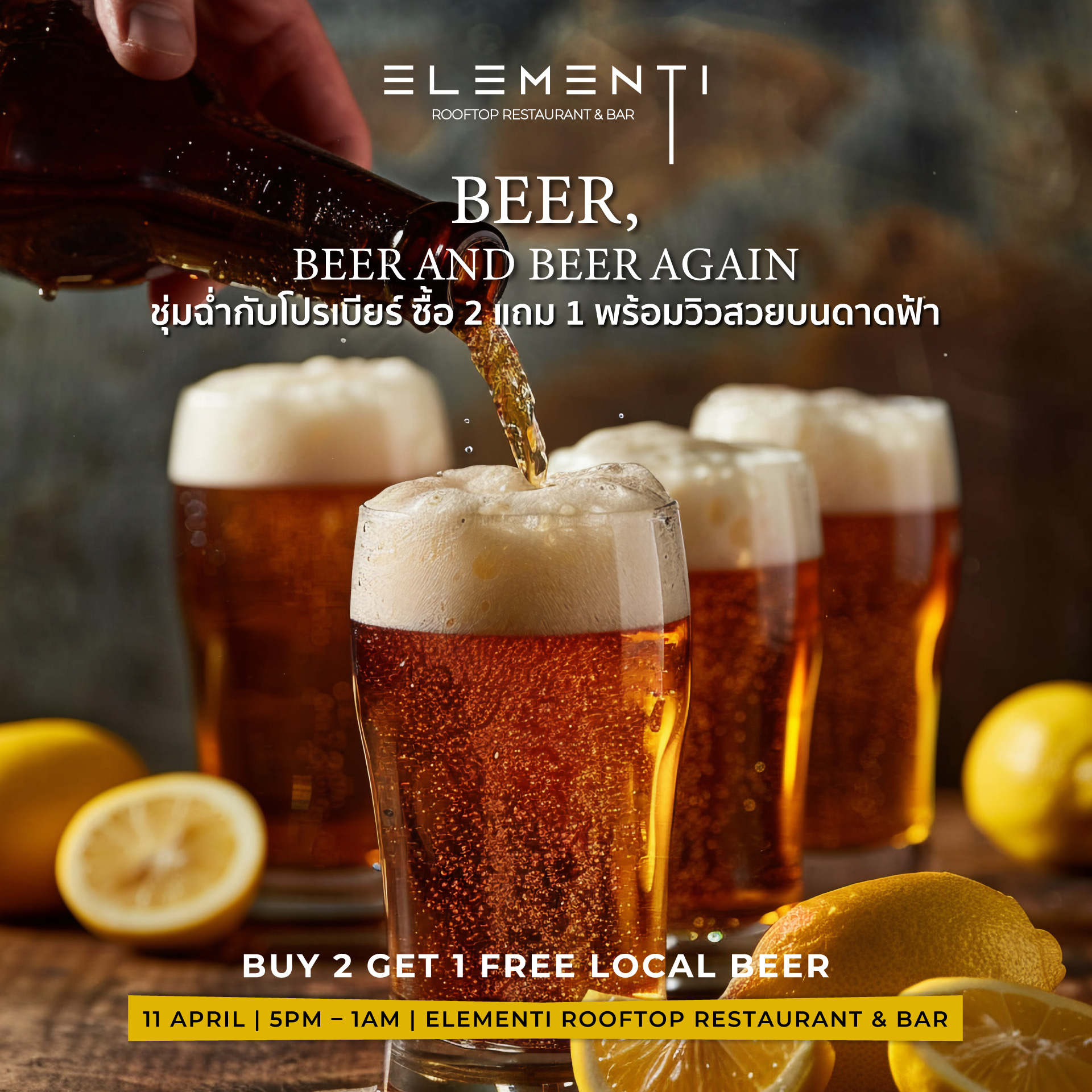 Friday, July 25 | 9 PM – Midnight at Elementi Rooftop Bar Enjoy 2 hours of unlimited bites and bubbly drinks for only THB 799 net/person!