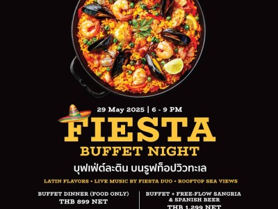 One Night Only! Fiesta Buffet Night at Elementi Rooftop Restaurant & Bar Get ready for an unforgettable rooftop dining experience at Holiday Inn & Suites Rayong on Thursday, May 29th, 2025. Celebrate the evening with your loved ones while enjoying breathtaking sunset views over the ocean and indulging in a premium selection of authentic cuisine crafted exclusively for this special night. Book Now