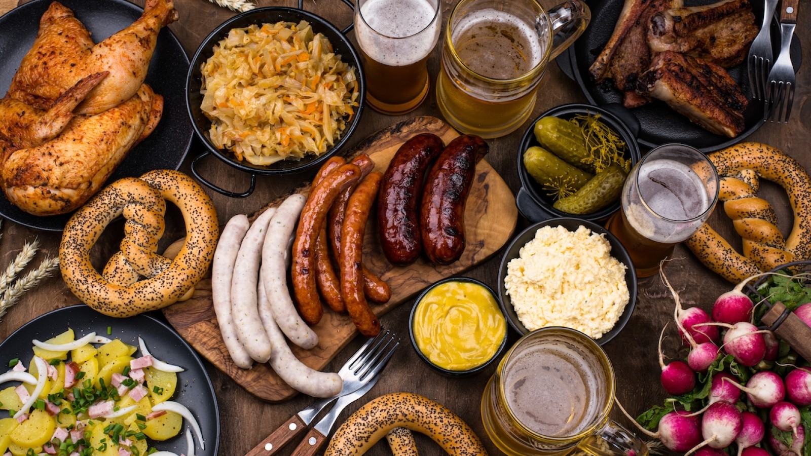 German Meat Platter. Enjoy sausages, meatballs, pretzels, sauerkraut, roasted potatoes, and more. Perfect for 2 guests with optional German beer pairing
