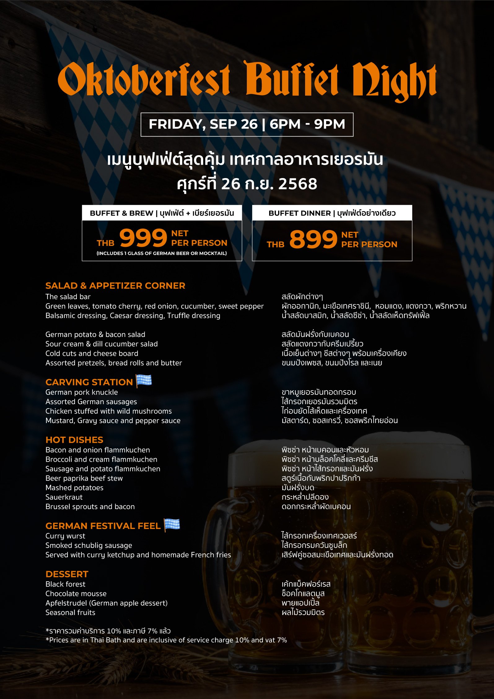 • Oktoberfest : 26 Sep 25 | 6 PM - 9 PM