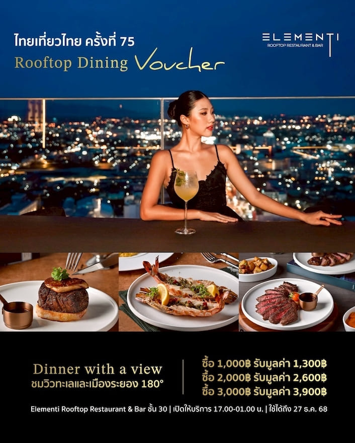 • ใช้ได้ที่ Elementi Rooftop Restaurant & Bar ชั้น 30