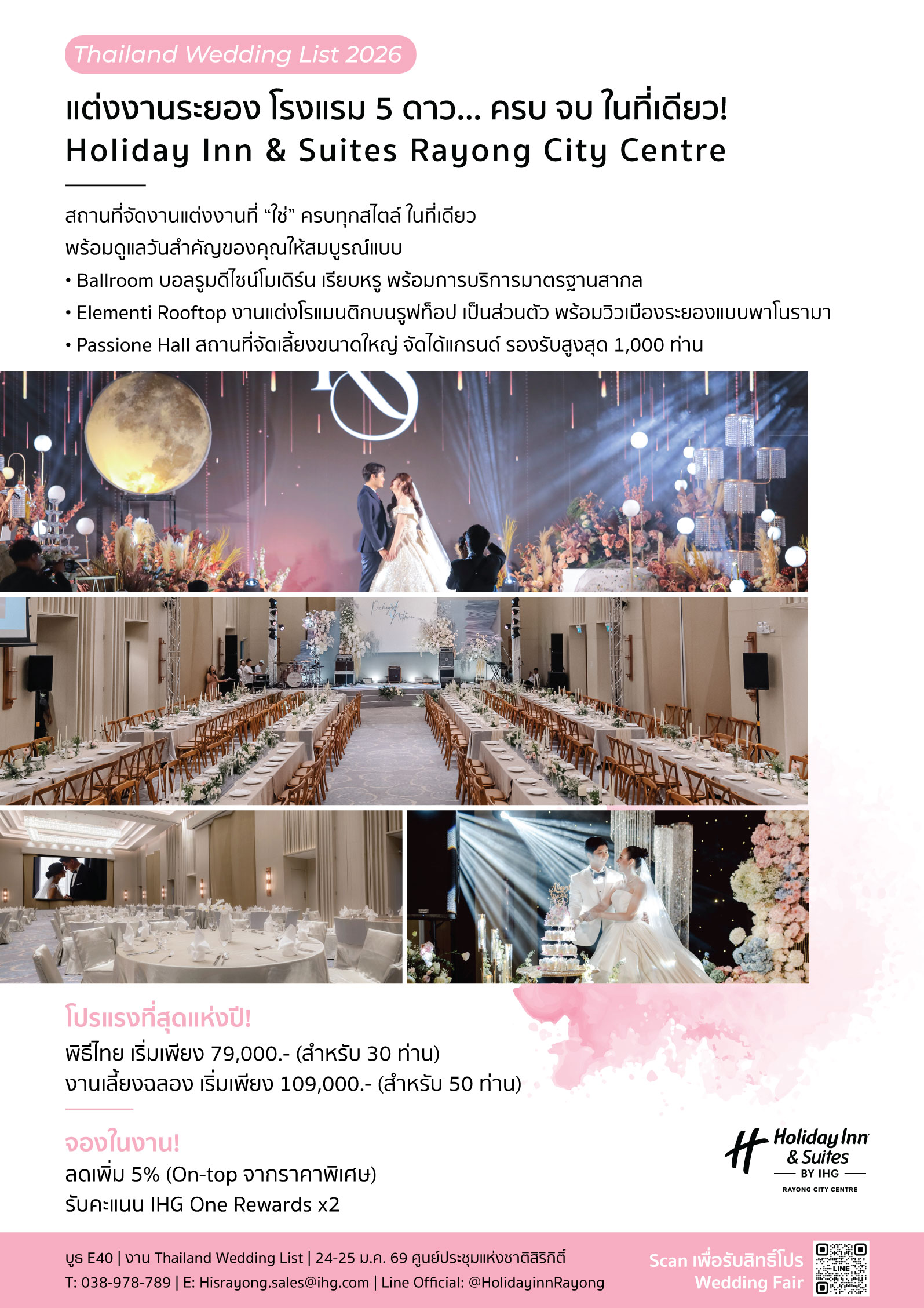 เที่ยวระยองในราคาสุดคุ้ม! กับโปรโมชั่นไทยเที่ยวไทย ยิ่งซื้อยุ่งคุ้ม เริ่มต้นคืนละ 1,717 บาท Voucher ใช้ได้ถึง 31 ส.ค. 69 พักผ่อนอย่างมีระดับ กับบรรยากาศสุดพิเศษที่โรงแรม ฮอลิเดย์ อินน์ แอนด์ สวีท ระยอง