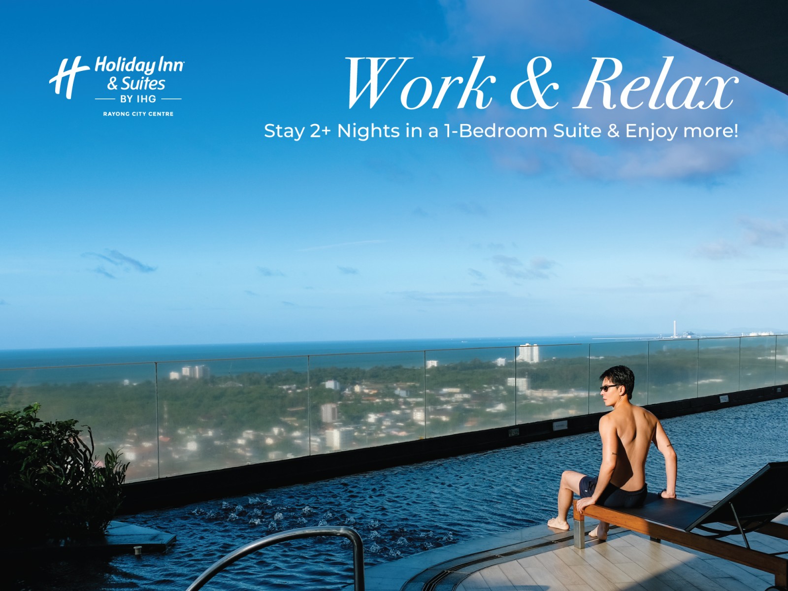 Work & Relax in Perfect Balance with 1-Bedroom Suite Offer Breakfast, Club Lounge Access & THB 500 F&B Credit, plus late check-out until 2 PM. Experience elevated comfort at Holiday Inn & Suites Rayong. Book now!