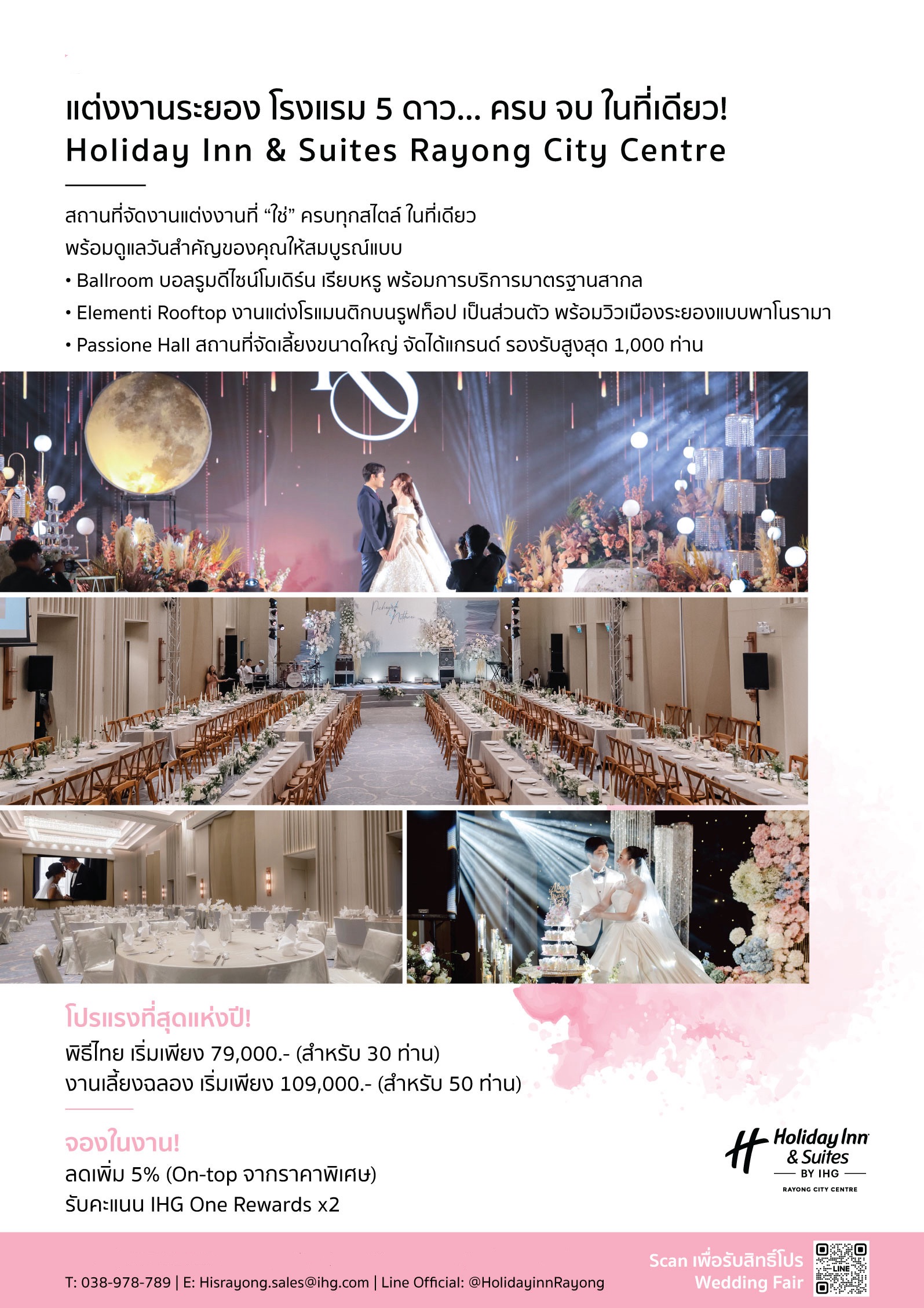 สถานที่จัดงานแต่งใจกลางเมืองระยอง สัมผัสการจัดงานแต่งงานที่โรงแรมระยอง ตามมาตรฐานระดับโลกจาก IHG ที่ใส่ใจทุกรายละเอียด พร้อมสิ่งอำนวยความสะดวกครบครัน ที่ทำให้ทุกโมเมนท์ในวันพิเศษในการจัดงานแต่งงาน ระยอง ของคุณน่าประทับใจ ด้วยทีมงานมืออาชีพที่จะคอยดูแลทุกช่วงเวลา เพื่อให้วันสำคัญของคุณเป็นไปอย่างราบรื่นและน่าจดจำ เพื่องานแต่งงานที่สมบูรณ์แบบของคุณ