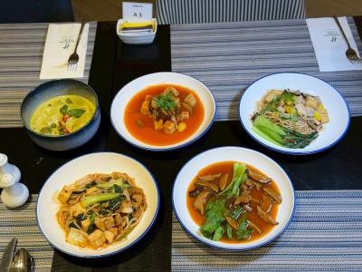 เมนูพิเศษ สำหรับ Mid-Week Buffet วันพุธ สุดคุ้ม! และ Seafood & Meat Lover Buffet วันเสาร์ ที่มีสเตชั่น เมนูอาหารเจ สามารถสั่งพิเศษได้ไม่อั้น ปรุงอย่างพิถีพิถันโดยเชฟมากฝีมือ เพื่อให้ทุกท่านที่ถือศีลกินเจสามารถร่วมโต๊ะอร่อยกับครอบครัวหรือเพื่อน ๆ แบบอุ่นใจ