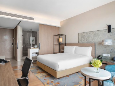 ห้องพักสไตล์โมเดิร์น ขนาด 32 ตร.ม. บนชั้น 9-13 พร้อมวิวทะเลและวิวเมืองระยองที่สวยงาม เหมาะสำหรับการพักผ่อนอย่างเต็มที่ เตียงนอนขนาดคิงไซส์ที่นุ่มสบาย พร้อมสิ่งอำนวยความสะดวกครบครัน อาทิ WiFi ความเร็วสูง ทีวี เครืองชงกาแฟ และห้องน้ำส่วนตัวที่แยกเป็นสัดส่วน จองเลย