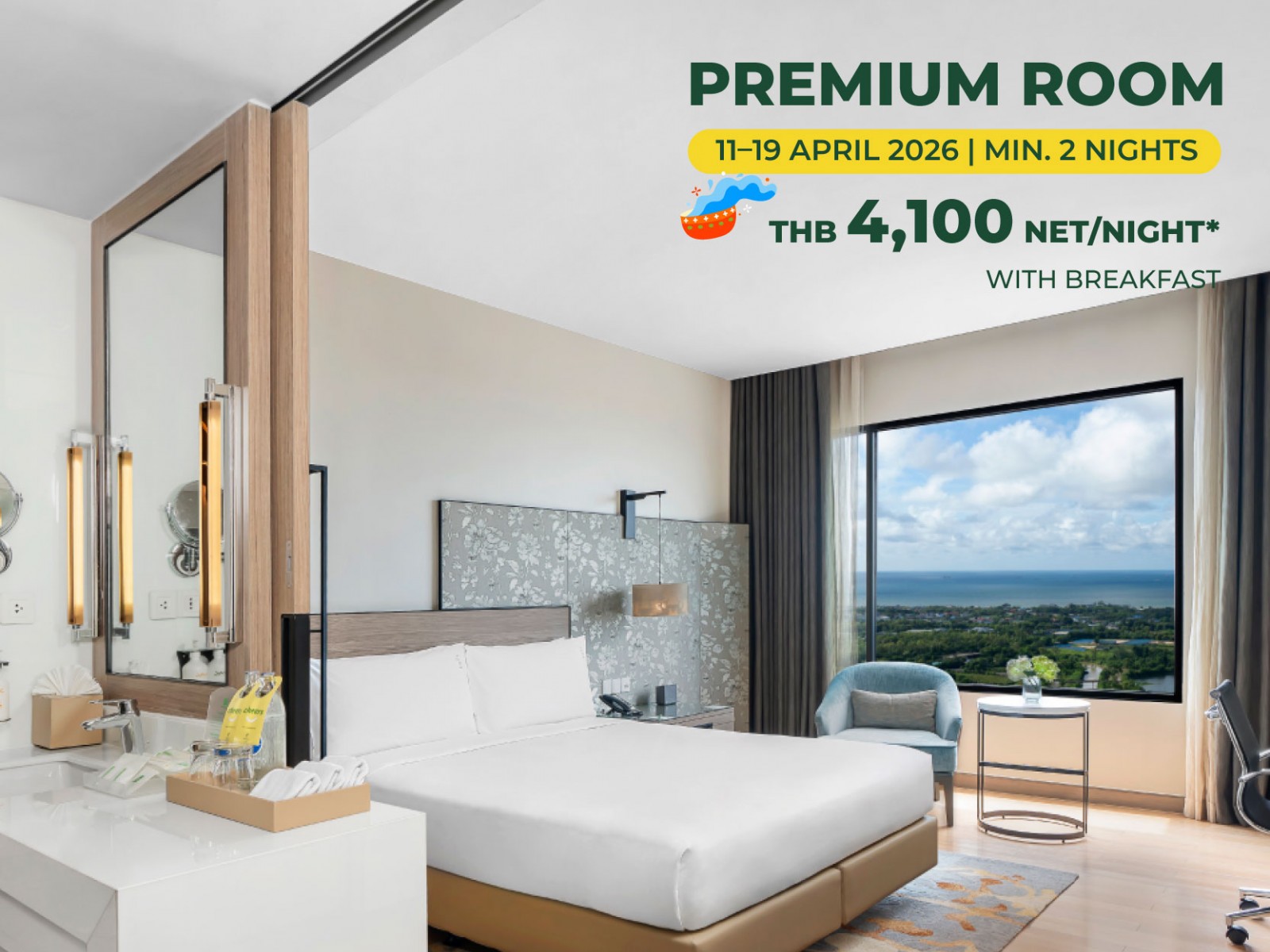 Join the Songkran Splash Stay package is designed to keep you cool, comfortable, and ready for the celebration. Enjoy a relaxing stay in the heart of Rayong with a splash-ready survival kit, and THB 300 F&B credit to refresh and recharge after a day of festive splashing during 11-19 April 2026