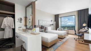 Discover our sophisticated 2 Bedroom Suite, comprising 1 King Bed and 2 Single Beds, nestled on the 27th floor for convenient access to the Executive Club lounge. These refined 94-square-meter suites present the epitome of delicate comfort, offering a luxurious experience complete with an array of amenities. Revel in the expansive living, dining, and kitchen areas, along with the indulgence of a separate premium bath and a walk-in shower. In-room conveniences include a microwave, Bluetooth speaker, and Smart TV, all complemented by a breathtaking Mountain View that adds a touch of natural splendor. Stay seamlessly connected with unlimited high-speed Wi-Fi access and relish the added privilege of entry to the Executive Club Lounge, enhancing your overall stay.