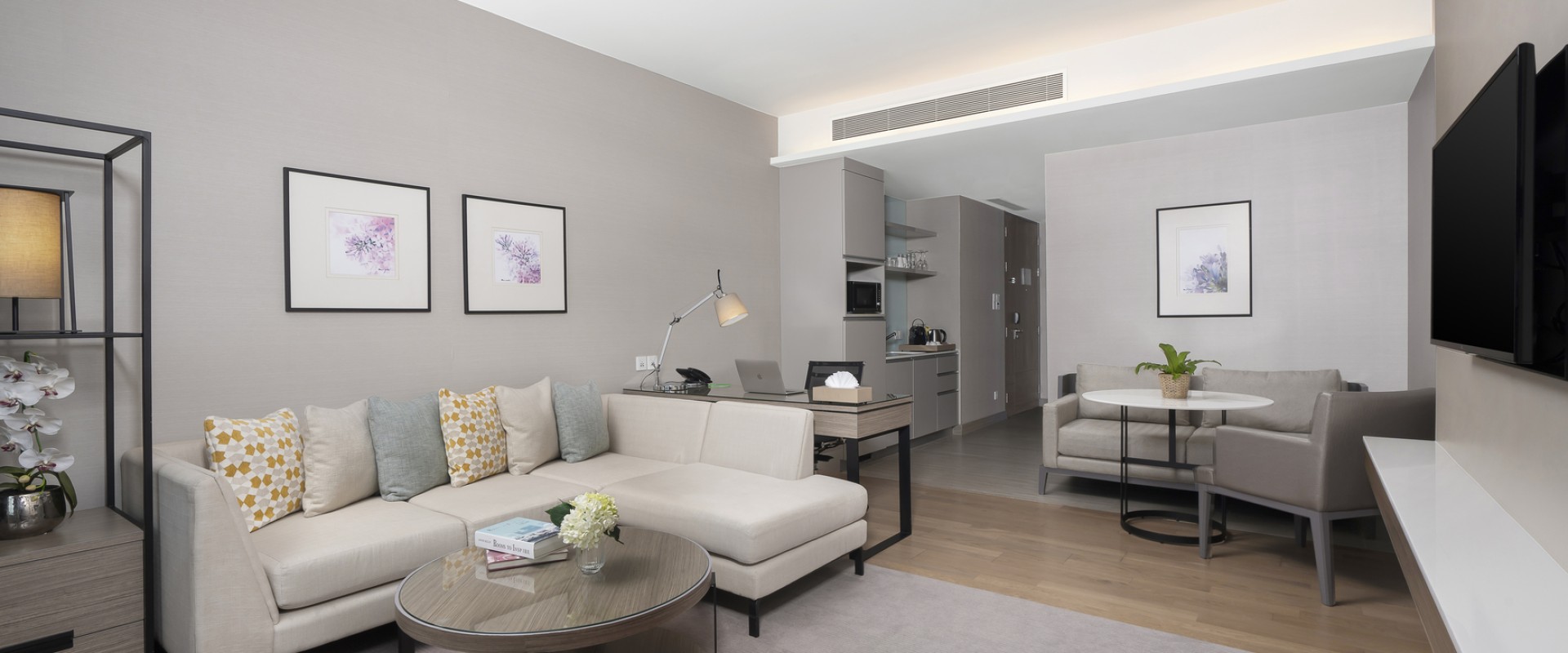 ห้องสวีทหนึ่งห้องนอน พื้นที่เริ่มต้น 62 ตารางเมตร ห้องพักที่ได้รับความนิยม สะดวกสบาย ห้องสวีทแต่ละห้องได้รับการออกแบบเพื่อมอบความสะดวกสบาย พื้นที่ใช้สอยที่ทันสมัย มีโซนห้องนั่งเล่นแยกออกมา อีกทั้ง ภายในห้องน้ำมีอ่างอาบน้ำเพื่อเพิ่มความโรแมนติกและเพือความสะดวกสบาย พร้อมสิทธ์เข้าคลับเลาจน์ที่มีอาหารว่างและเครื่องดื่มให้บริการตลอดทั้งวัน พร้อมสิ่งอำนนวยความสะดวกต่างๆครบครัน