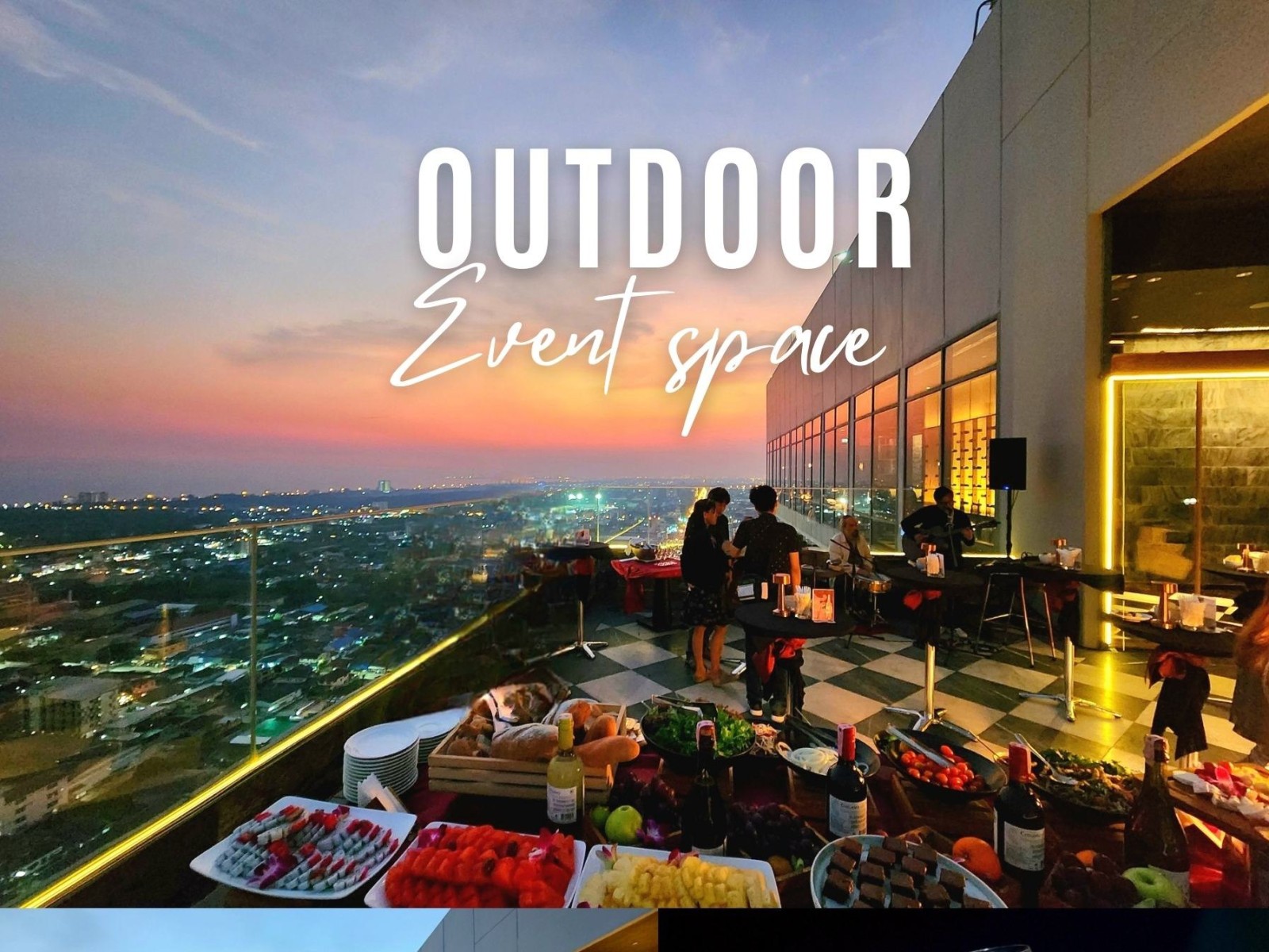 - โซน Outdoor สุดชิล ที่ให้คุณได้ดื่มด่ำบรรยากาศพระอาทิตย์ลับขอบฟ้า พร้อมเครื่องดื่มเย็นๆ และเสียงเพลงเบาๆ หรือจะเล่นใหญ่ปิดโซน Outdoor จัดปาร์ตี้แบบ Private ก็ย่อมได้ เพียงแค่ ติดต่อเรา