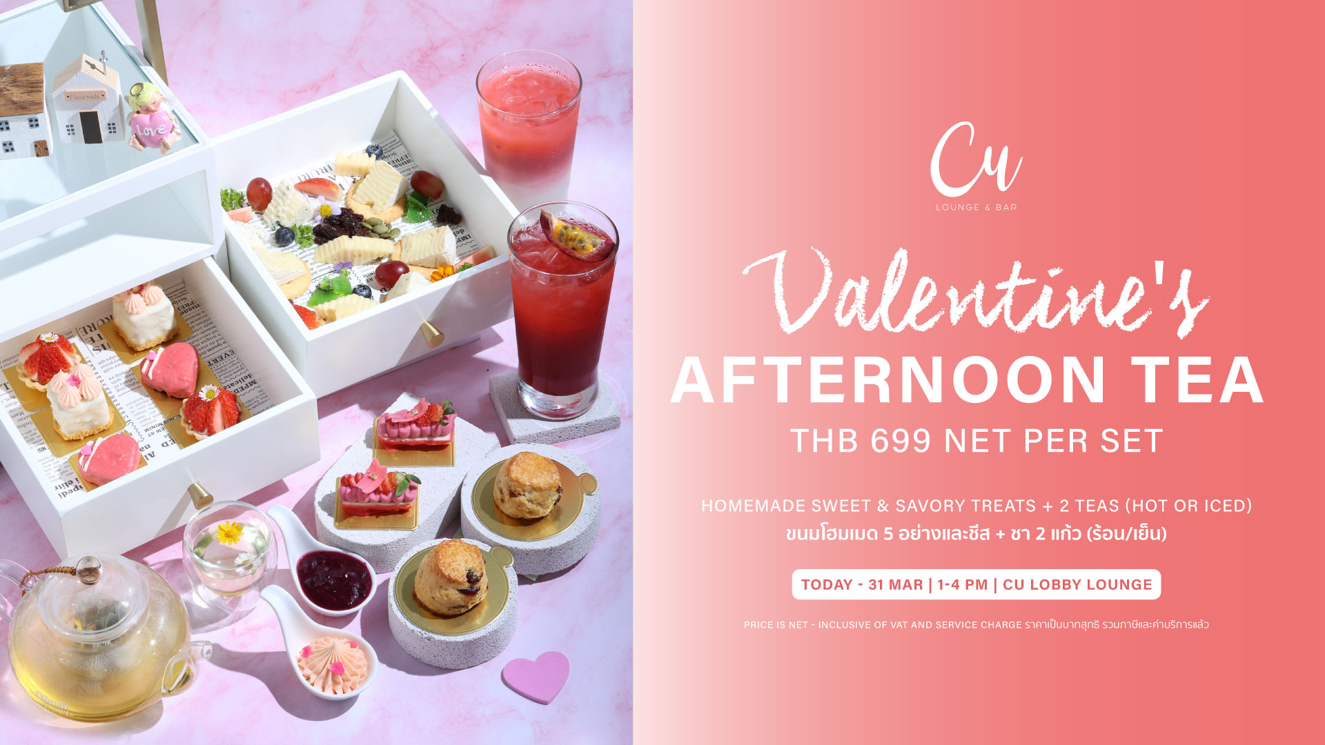 หลังจาก 31 มี.ค. 69 โปรโมชั่น Afternoon Tea จะปรับเป็นเซ็ทปกติ ยังคงฟินกับเซ็ตขนม และเครื่องดื่ม ได้ตั้งแต่ 13.00 - 16.00 น.