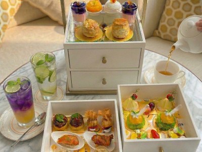 - ของหวาน: สโคนมะพร้าว เสิร์ฟพร้อมครีมมะพร้าวและแยม, มูสเค้กมินิพินาโคลาด้าผสมรัม, มูสเค้กข้าวเหนียวมะม่วง, พานาคอตต้าดอกอัญชัน, ทาร์ตสับปะรดเสาวรส, ลูกชุบ